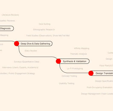 Stakeholder Mapping: I conduct in-depth interviews and workshops with everyone who touches the project—from owners and managers to cleaners, teachers, and service deliverers.
