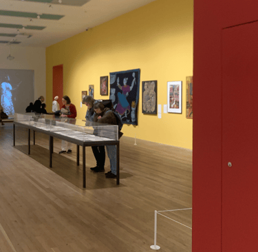 This Aboriginal Australian artist, for 8 years from the ages of 78 to 86, created 3000 artworks. They were not small - I calculated that to be almost 1 painting a day for 8 years- who knows how many dots a day. Obsession? Prolificness. Production. In the past, aboriginal art was made with markings in the ground or painting on surfaces using natural pigments. As I stared at the 80 paintings I wondered - why acrylic? Plastic, preservable, permanent. The message won’t fade. ‘We were here, we are here’ she says.