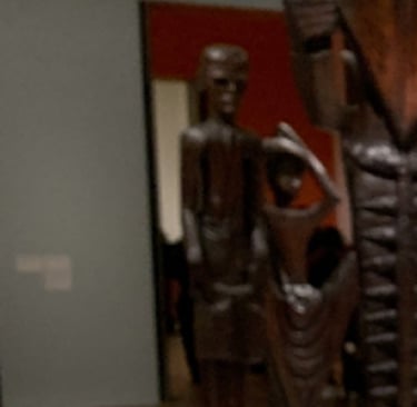 Seven Wooden Sculptures (1961) by Ben Enwonwu for the entrance of the Daily Mail headquarters. The figures held newspapers that looked like wings - freedom of information?