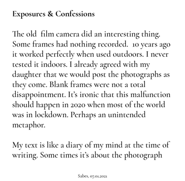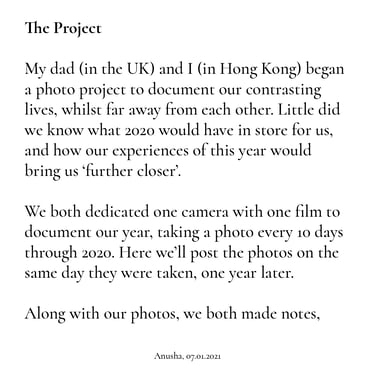 In 2020, for the whole year we each had a point and shoot that we'd use every 10 days. 36 frames on a reel- documenting 36 days across out year. (Little did we know what the 2020 had in store.)